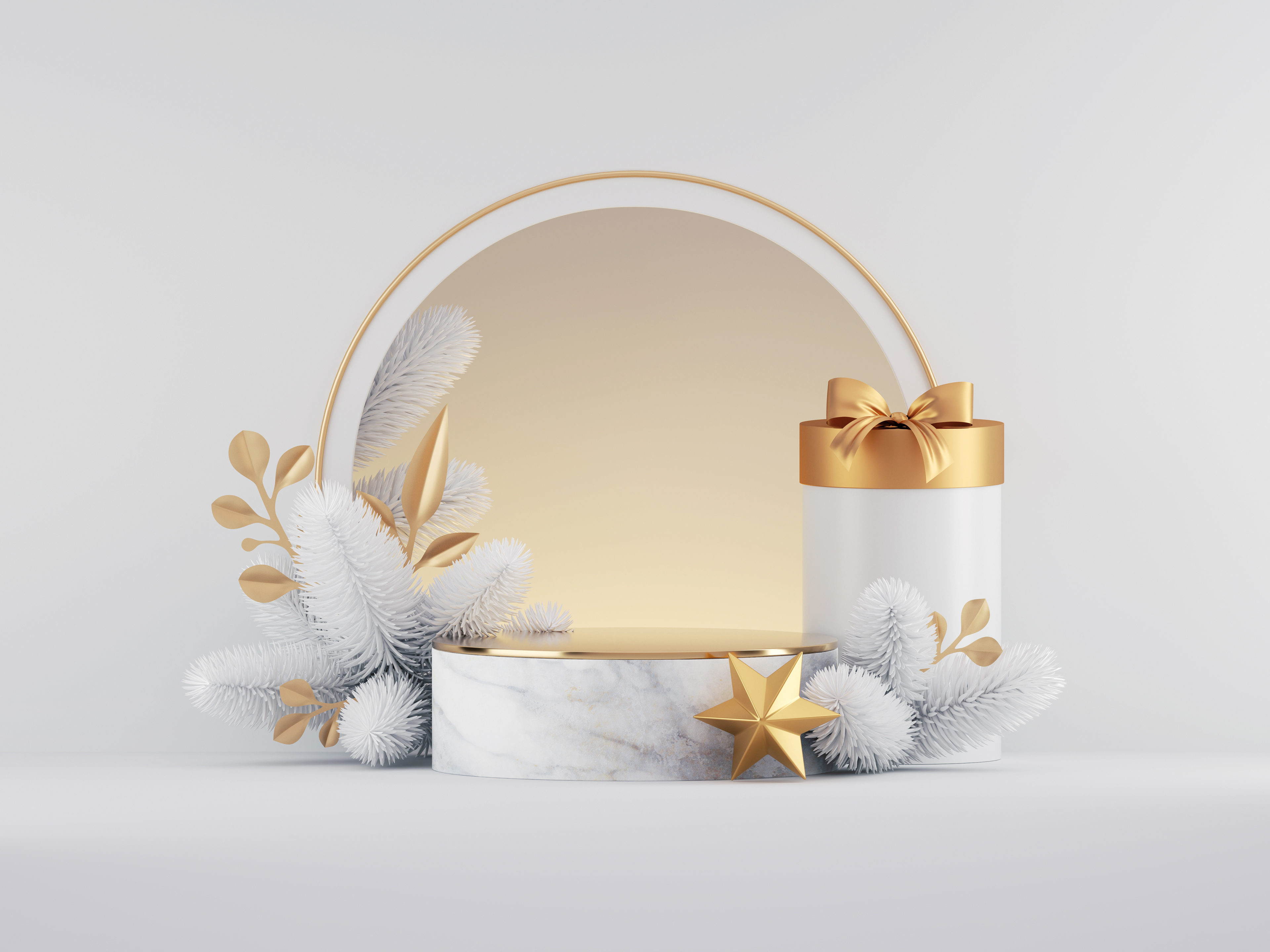 Product photos by Nara San. Circular shapes on grey by d1skĀ via Getty Images. Gold metal outlines by tatianazaetsĀ via Getty Images. Gold Christmas display by wacomka via Getty Images.