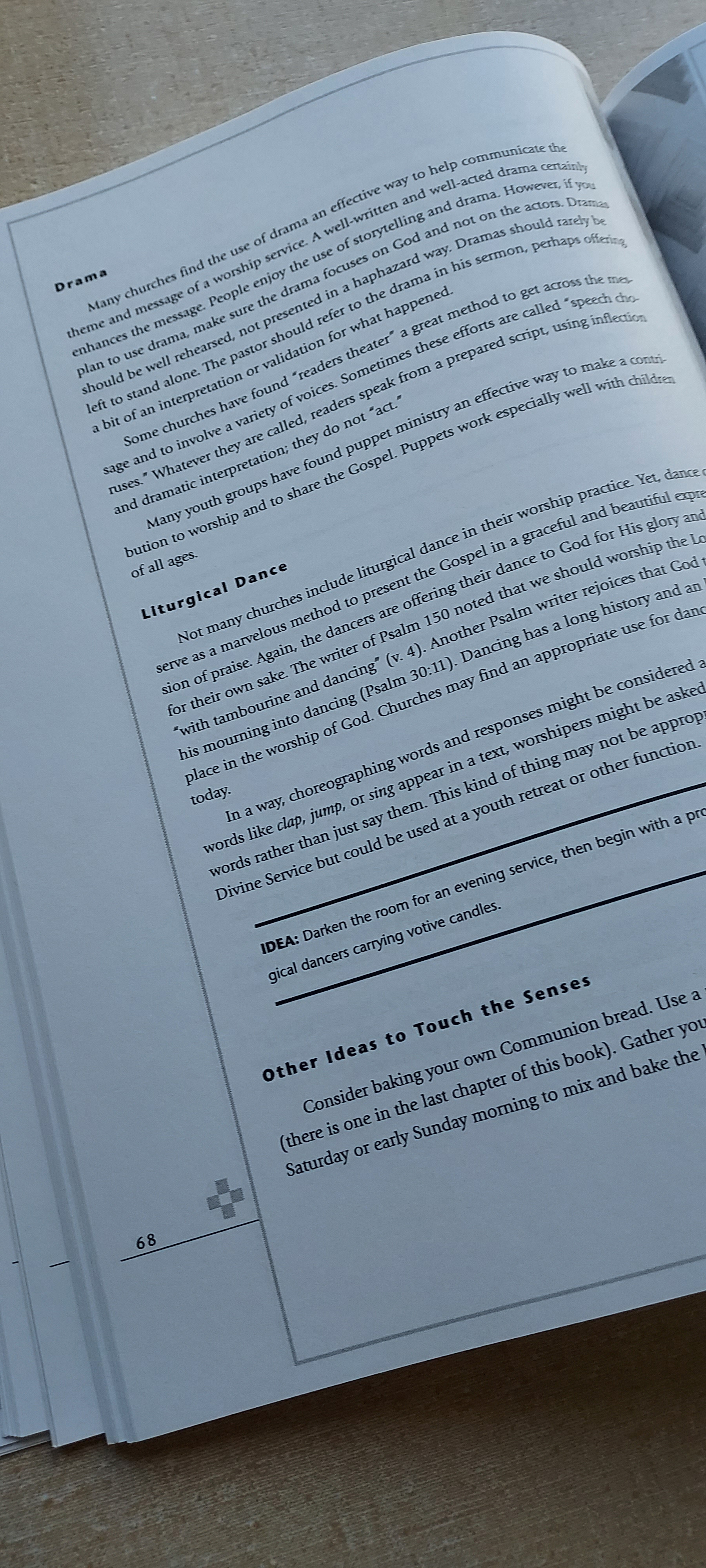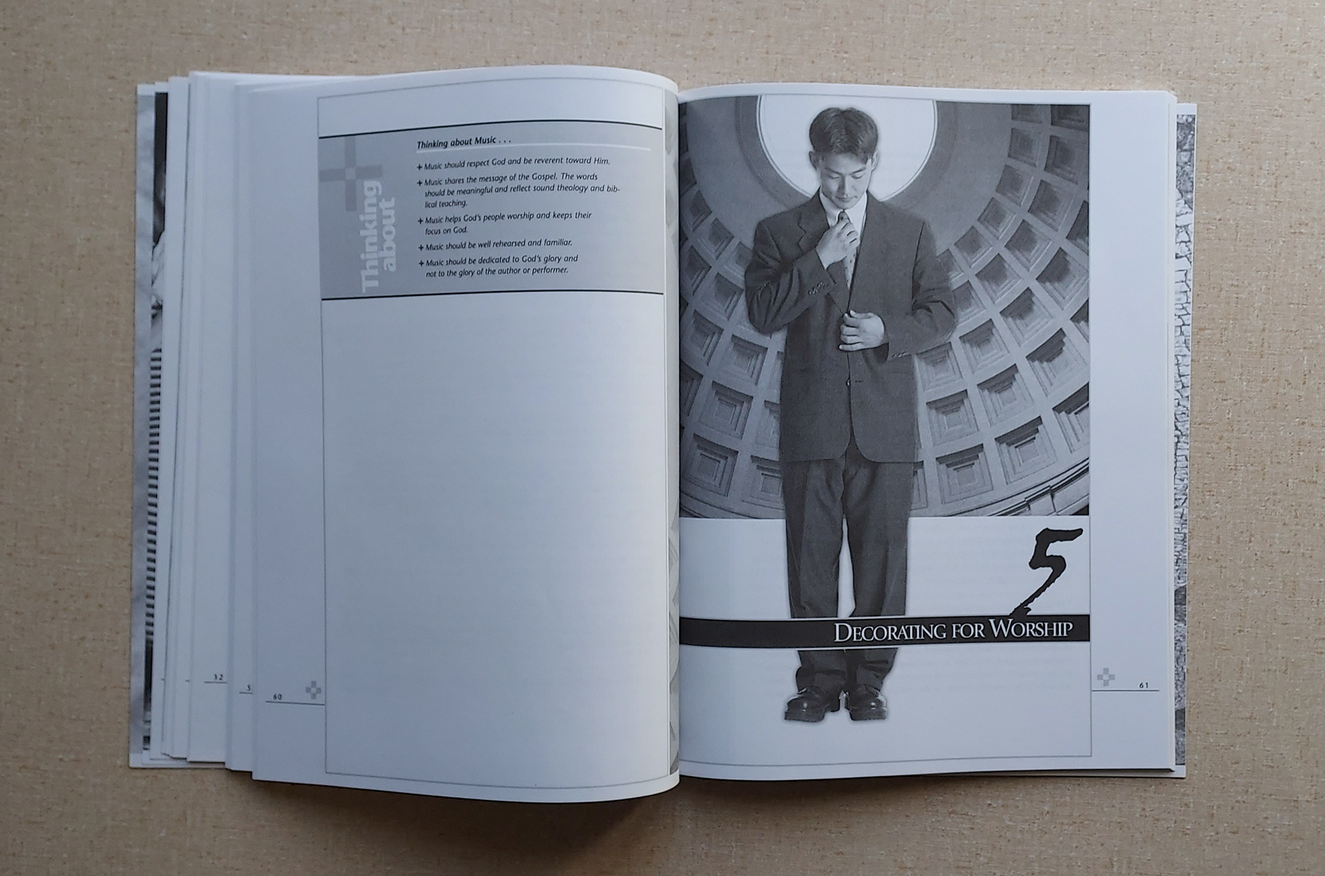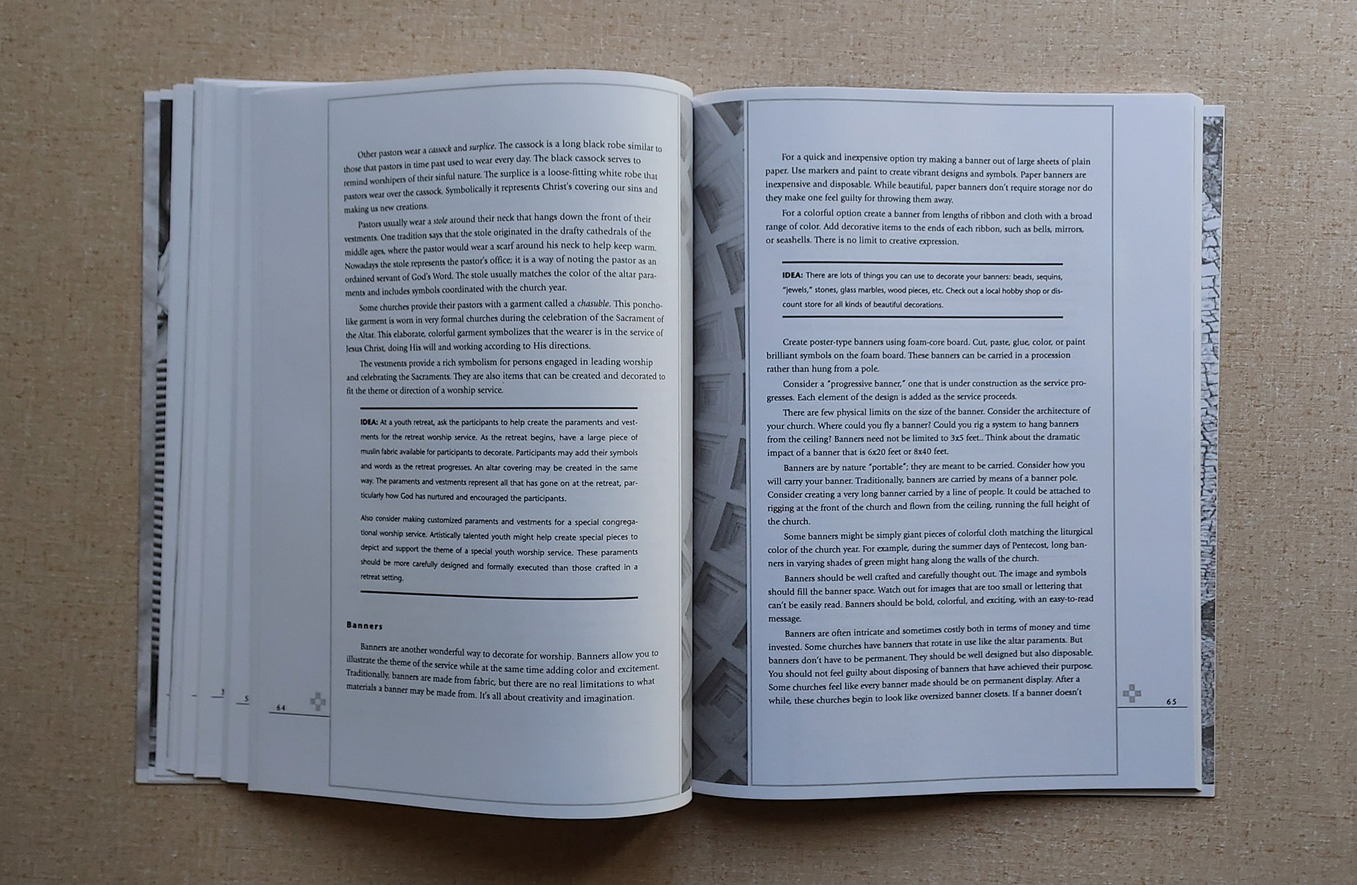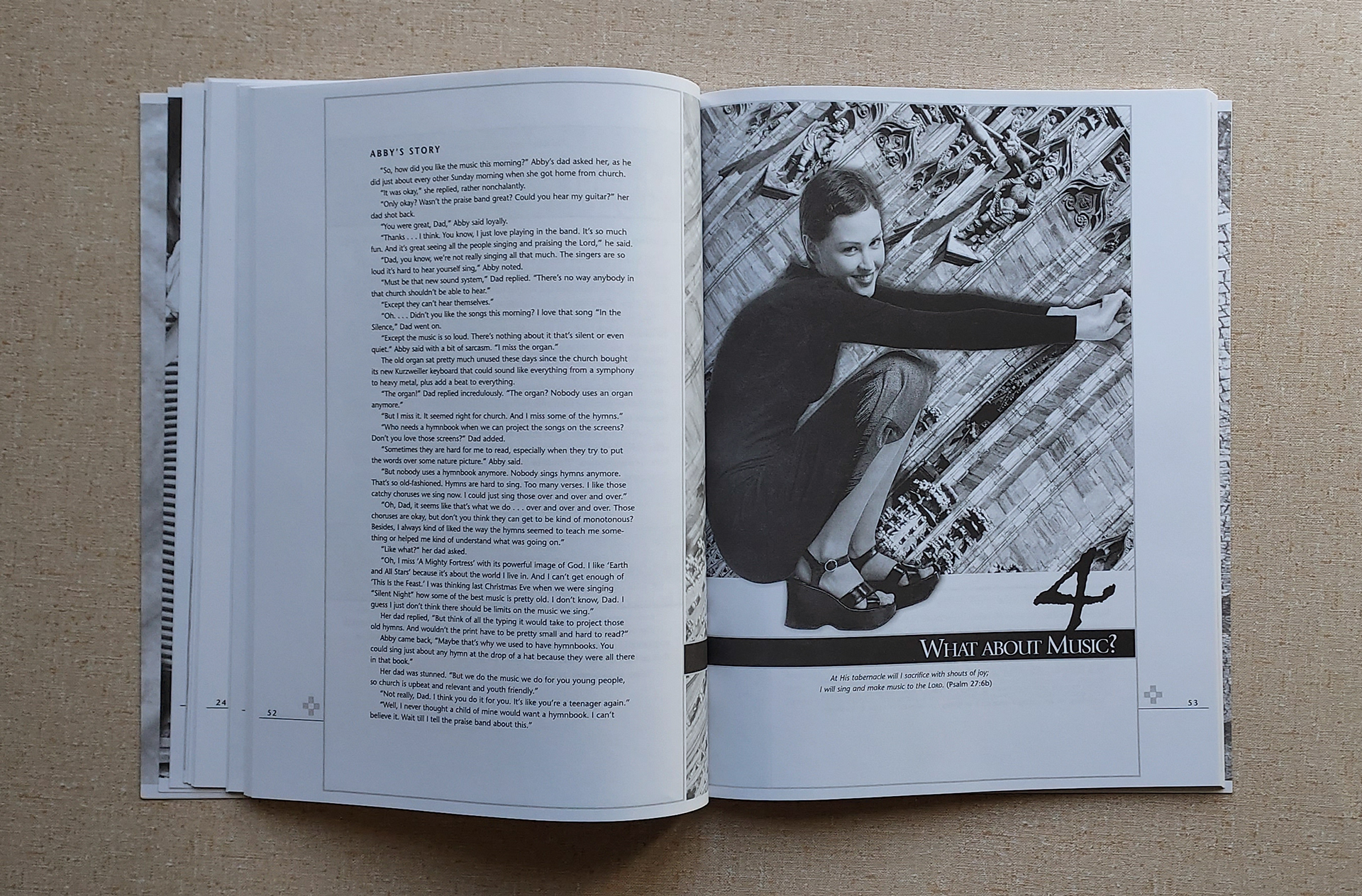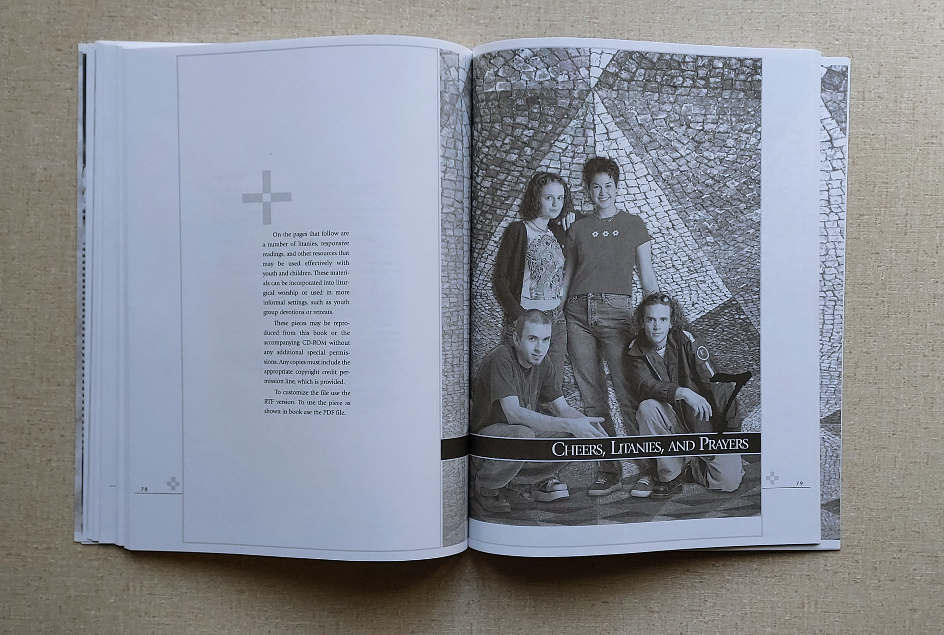 Interior layout design for a youth ministry resource. I carried the cover concept throughout the interior design by featuring teens combined with architectural elements. Printed by Concordia Publishing House in 2005.