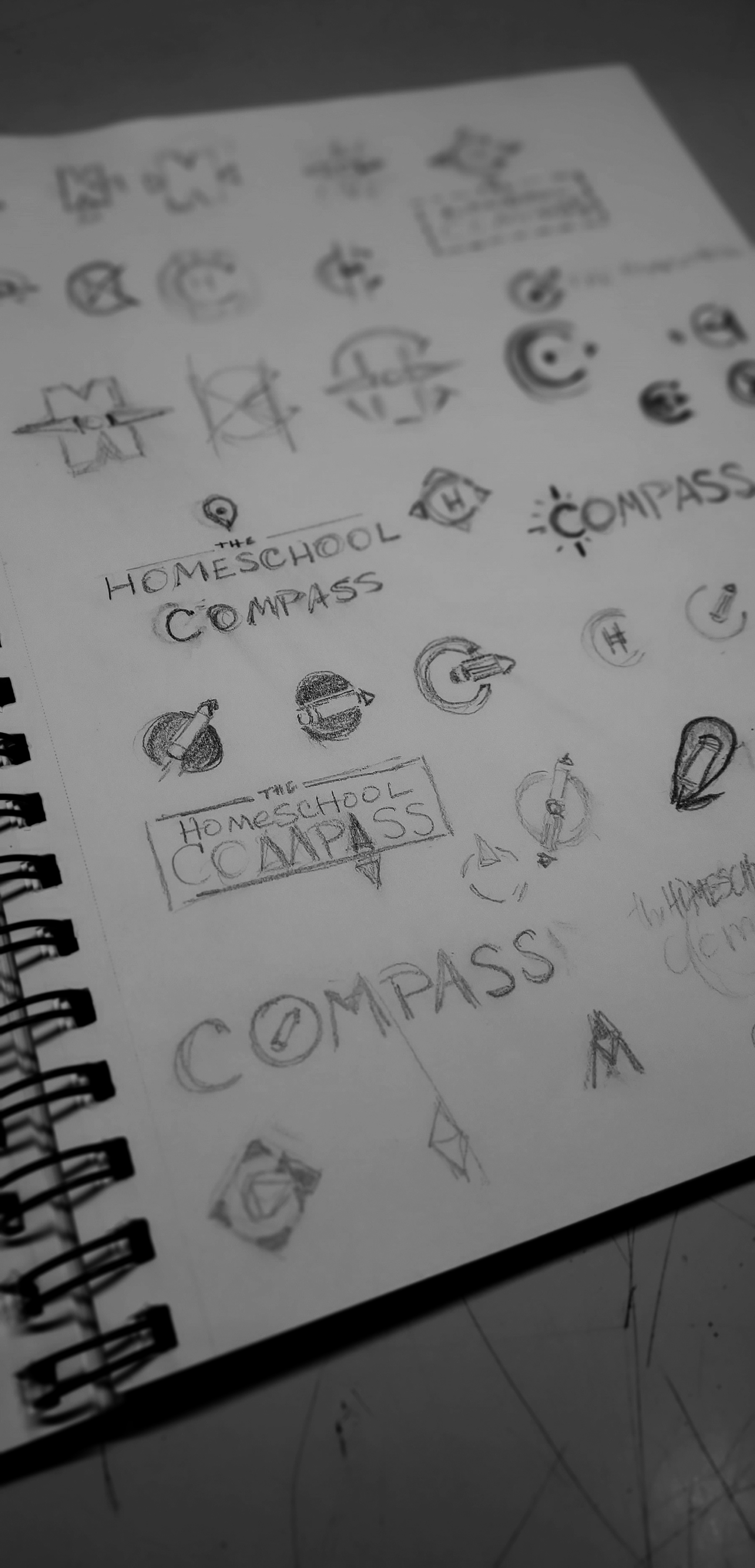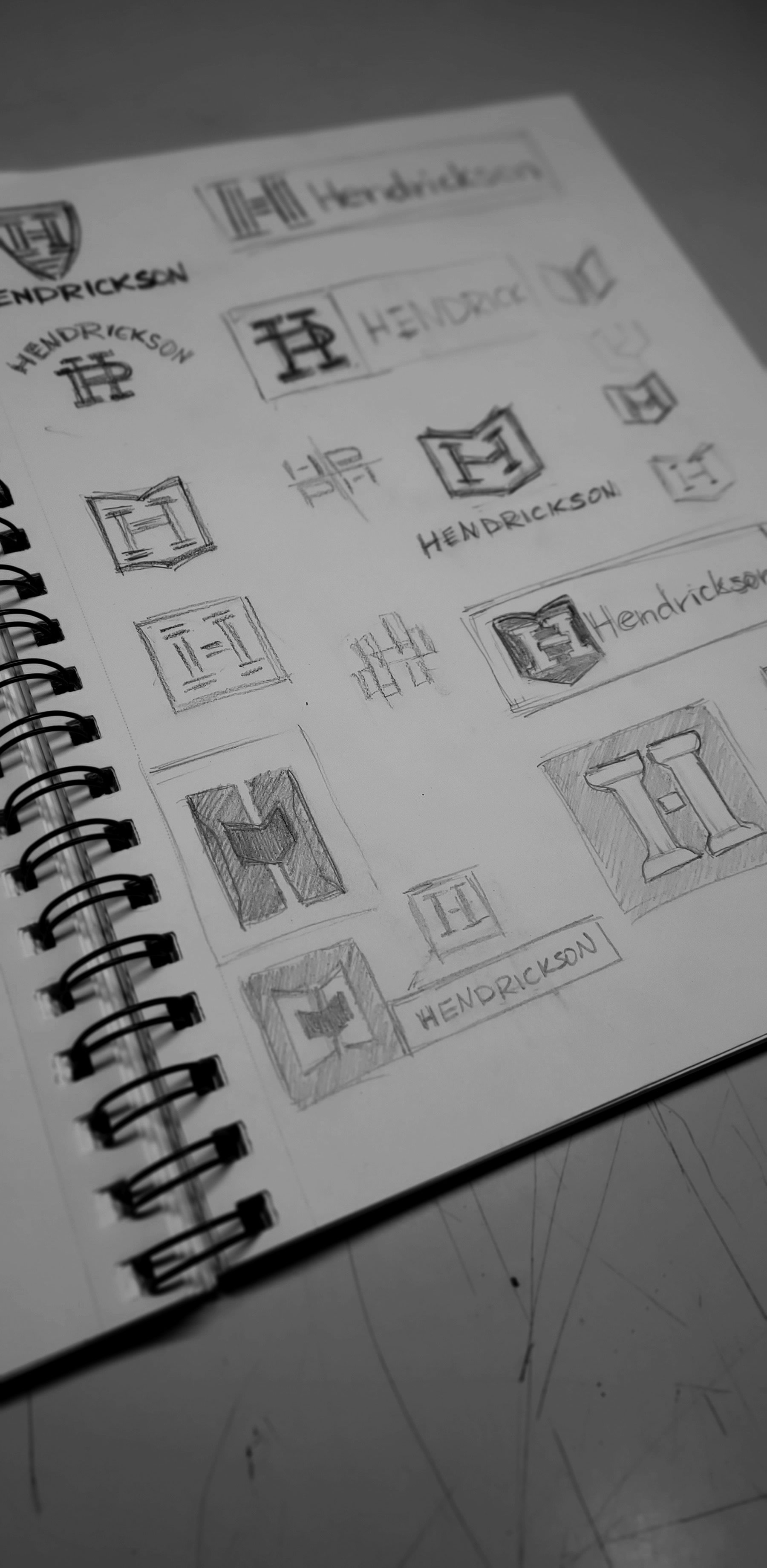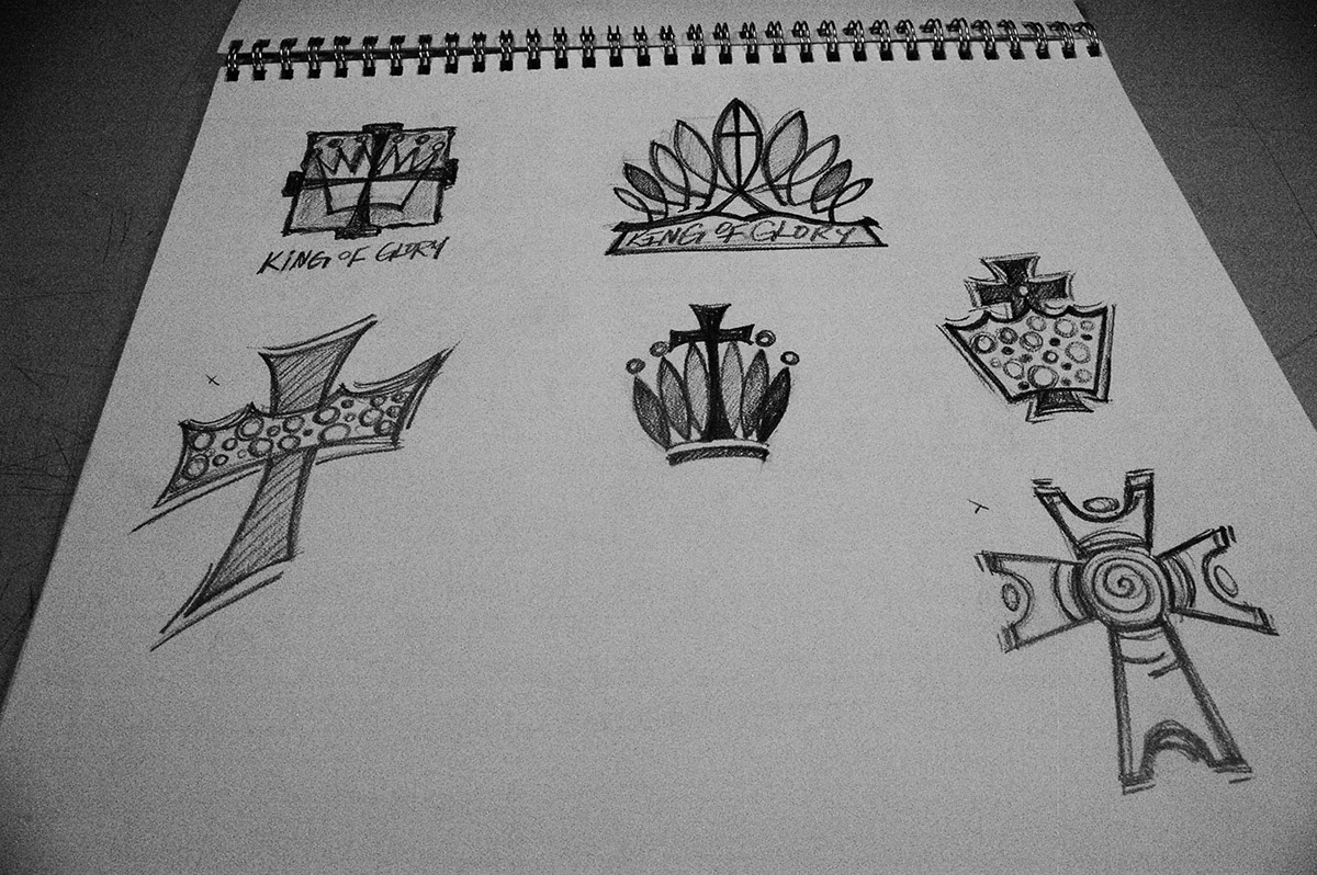 Sketchbook samples showing my thought process while designing logos