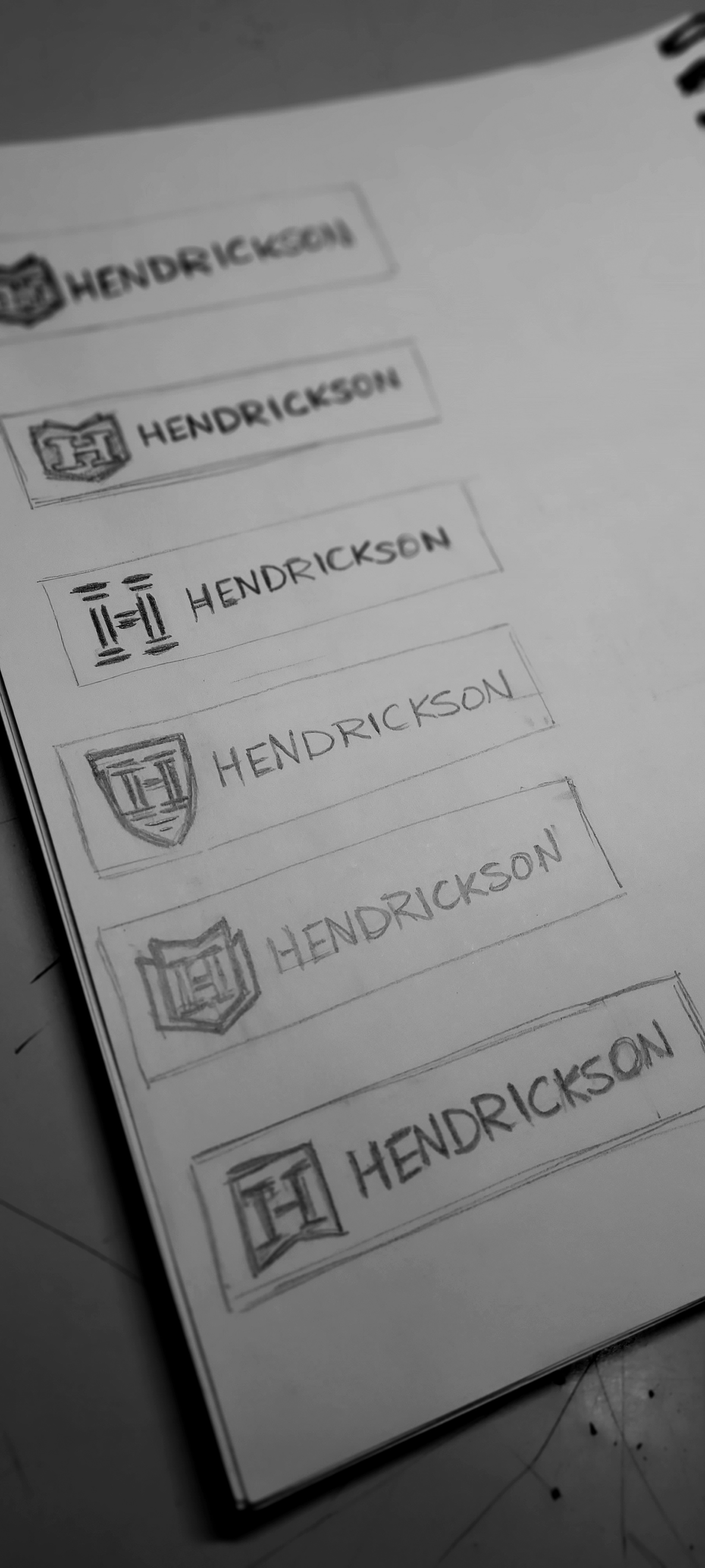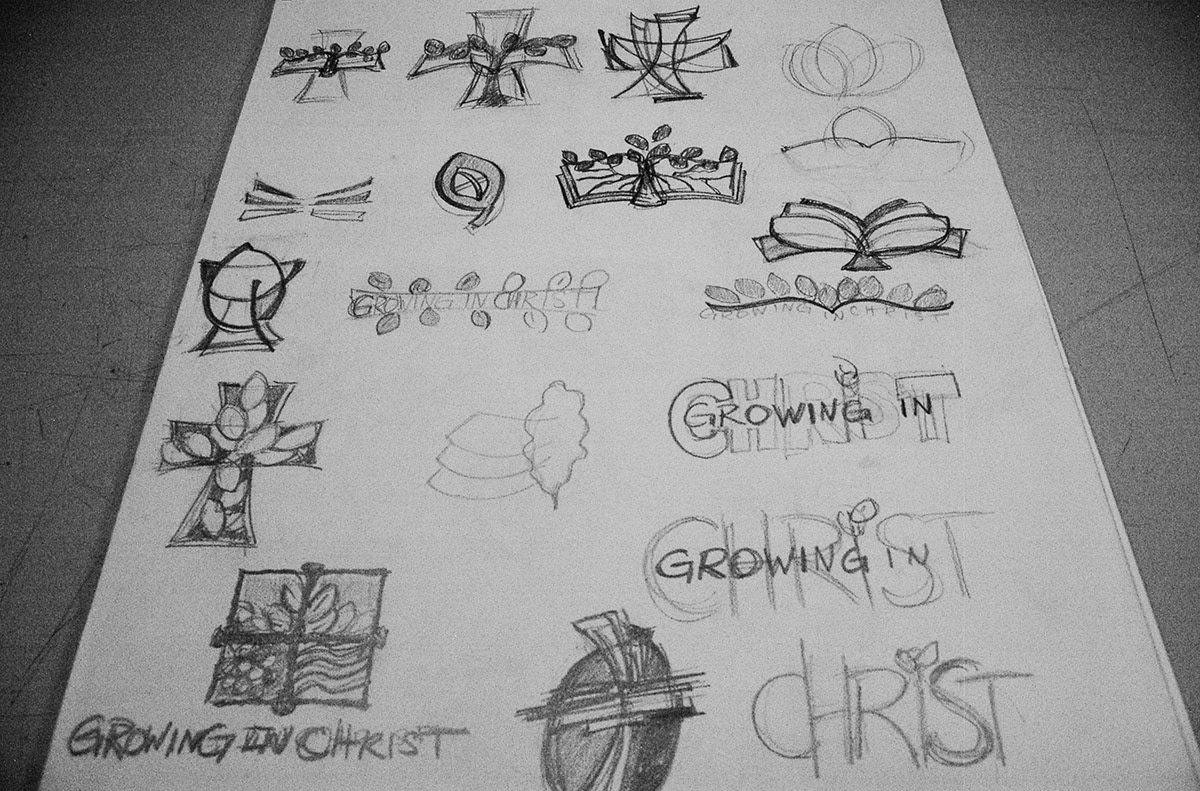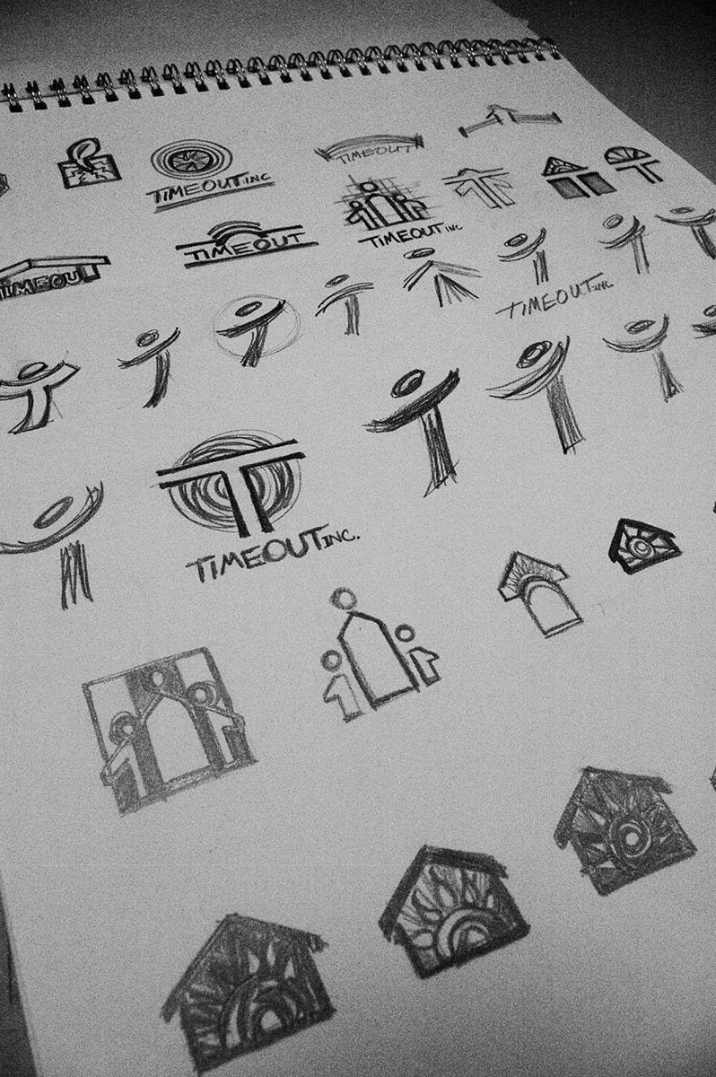 Sketchbook samples showing my thought process while designing logos