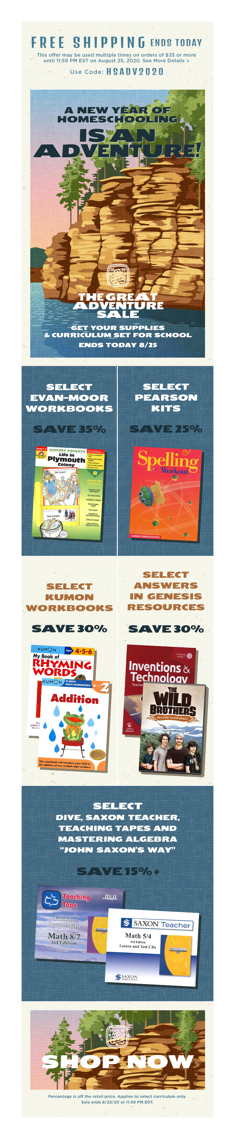 Homeschool email campaign for Christianbook. The homeschool editor requested a vintage WPA national parks poster theme.