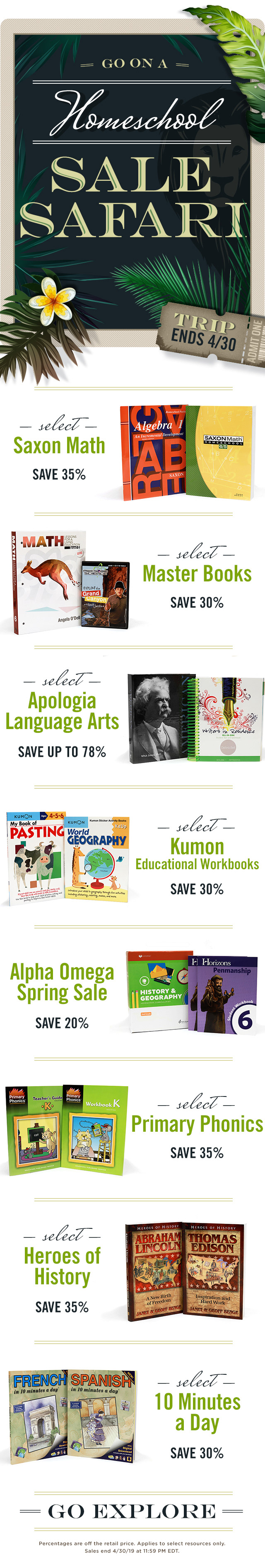 E-mail campaign advertising The Homeschool Sale Safari at Christianbook.com.